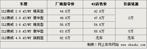 笔者从北京地区凯迪拉克经销商处了解到,目前SLS赛威的优惠幅度有一定幅度的下降,其中2.8排量和3.6精英版优惠2万元,3.6豪华版则优惠5万元。现车颜色主要是黑色款,其他还需要预订,但订期时间较长。