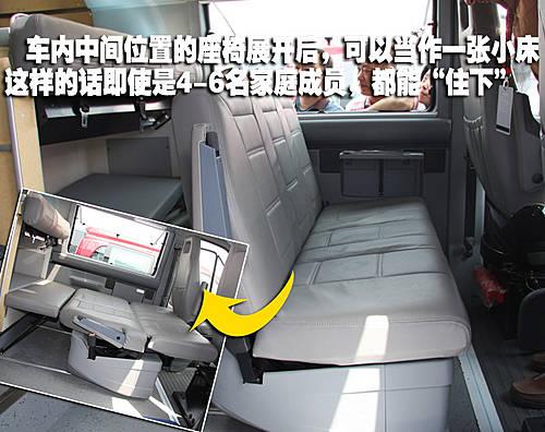 当然,为了满足全家人出游都能够获得舒适的休息环境,在车内的后排座椅还可以放倒并形成一张小一号的双人床。而在这张床下则是一个隐藏的储物空间,各个部分的设计非常的人性化。
