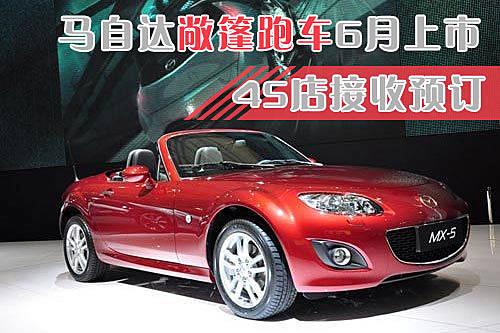 一汽马自达销售公司副总经理于洪江先生,近期在接受网上车市专访时表示,新近于上海车展正式亮相的敞篷跑车新款MX-5,将会于2009年6月上市销售,售价为29.98万元。于洪江透露,此次以整车进口形式引入国内销售的新款MX5,为搭载6速手自一体变速箱的电动折叠硬顶敞篷车型。与此同时,对于这款即将上市销售的新车,在京地区的一汽马自达4S店也在着手进行着相关的准备工作。据4S店内销售人员介绍,有购买意向的消费者可先行交纳3000元左右的订金预订车辆,提车日期大致在7-10月左右,新车将提供银色、黑色、红色与蓝色等车身颜色涂装供消费者选择。