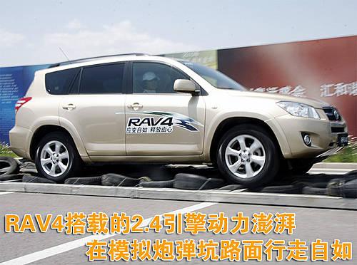 RAV4城市休闲SUV 2.4排量车型,其最大功率和最大扭矩分别为125Km何224Nm,与之匹配的5速手动和4速自动变速器。澎湃的动力性能,让RAV4城市休闲SUV在模拟炮弹坑路面行驶时行走自如。