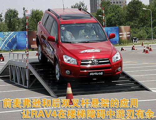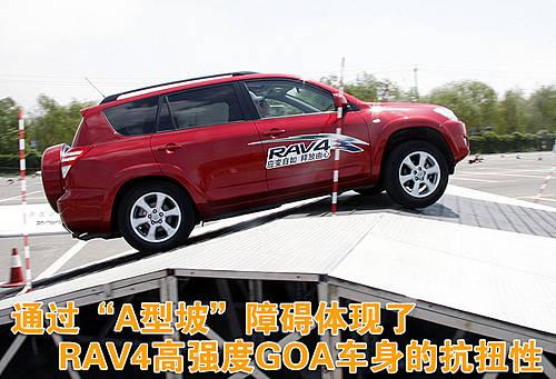 RAV4城市休闲SUV轻松通过“A型坡”障碍,体现了RAV4高强度GOA车身的抗扭特性。RAV4城市休闲SUV不仅拥有灵巧的车身和精准的操控,而且大型SUV才具备的越野通过性依然可以在RAV4身上找到。RAV4城市休闲,另类征服。