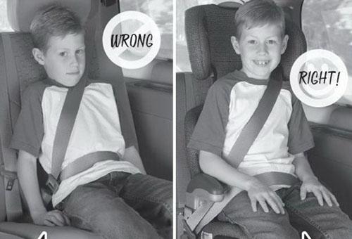 对于那些身高在1.5米以上的儿童来说,最好使用腰部和肩部安全带,肩部安全带应刚好穿过胸前系在肩部;腰部安全带应带系在稍低一些的位置,贴紧孩子的大腿,不应高过肚子;记住永远不要把肩部安全带系在胳膊下面或者孩子后背。
