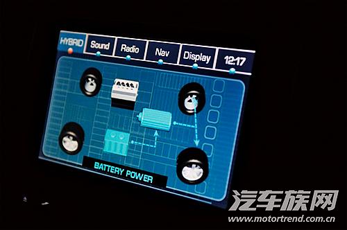 开车上路,这辆白色庞然大物给我的第一感觉就是静,特别的静。起步过程仅有电机发出的细微“嗡嗡”声。深踩油门,转速表指针迅速由auto位置开始向上爬升,同时中央显示屏上的动画也直观的告诉我们现在发动机和两台电机正在协同工作,共同驱动这台将近3吨重大家伙。而前文提到的ECO仪表指针也在此时从中间位置偏向右侧,提醒驾驶员平稳驾驶也是节能环保的关键。随着发动机和电机不断发力,窗外景物迅速向后退去,在车内除了发动机隐约的低吼以外,一切杂音都被厚重的车门隔绝在外。