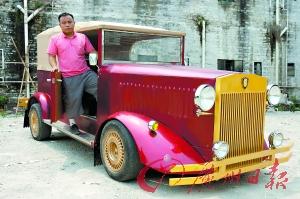 阿伟和他的山寨“劳斯莱斯老爷车”。图/记者 庄小龙