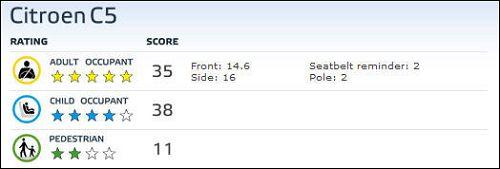 总体看来,C5对成年人保护出色获得5星评价,对儿童保护也比较优秀获得4星评价,对于行人保护相对较差,仅获得2星。