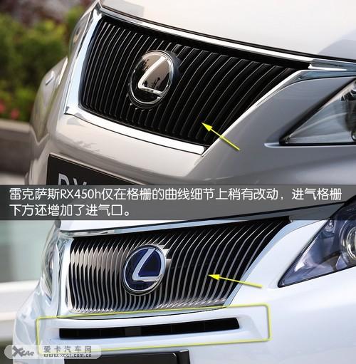 雷克萨斯RX350和RX450h的车头造型延续了雷克萨斯标志性的直瀑式进气格栅,雷克萨斯RX450h只是在格栅的曲线细节上稍有改动,进气格栅下方还增加了进气口,下方的雾灯也由一圈镀铬装饰包裹,显得更富质感。