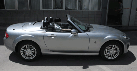 新一代车型并没有延续使用上一代的那种织布顶棚,转而使用了更实用的硬顶敞篷设计,精巧的顶棚只要12秒就能折起放进后备厢中,这个速度比许多软顶敞篷车型还快。不过说实话,相比它合上盖儿的样子,敞开顶棚后的MX-5更迷人。