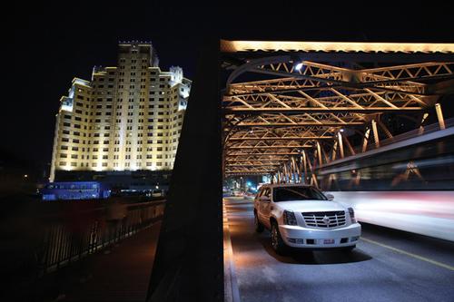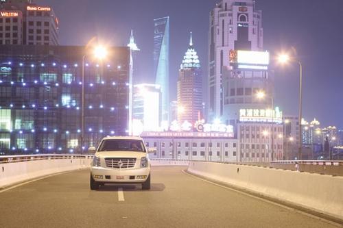 我正在驾驶一台巨大的凯迪拉克,它的长度突破了5米,而高度和宽度都突破了2米,这让正在我身旁的帕萨特看上去明显比平时小了一号。带有珠光效果的白色漆面和布满周身的镀铬装饰显然是为了引起更好的关注度而特意安排的。这种外部装饰效果很符合我对传统凯迪拉克的定义,巨型而且总是闪闪发光,但这样的装备并不能将我现在驾驶的这台车和一台普通的凯雷德区别开来。