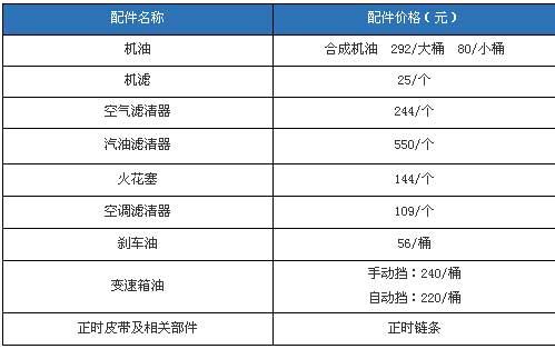 为了方便计算,我们假设空气滤清器在第三次、第六次时进行更换,更换机油机滤的价格为700元,更换机油机滤和空气滤清器的价格为1600元,更换火花塞和机油机滤的价格为1700元,而更换机油机滤和汽油滤清器的价格为2100元。在6万公里时进行比较大的保养,需要更换变速箱油和刹车油,不过由于经销商表示现在还没有做过6万公里的保养,所以含工时费的价格不能确定。另外值得一提的是,迈腾为电子助力转向,不需要定时更换转向助力油,发动机使用了正时链条设计,省去了更换正时皮带等部件的费用。