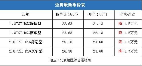 迈腾在北京二级市场上的优惠比较稳定,全系车型的优惠在1.5-1.7万元区间。