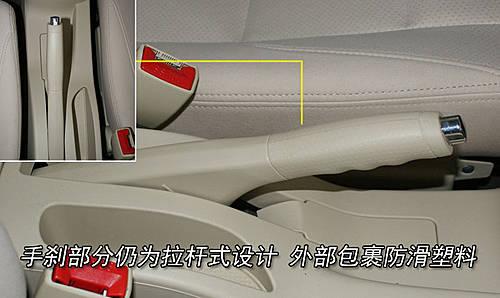 手刹拉杆包裹防滑塑料,把握手感不是很舒适,使用时操作很方便。周边储物格可以放置手机钥匙等小件物品,相信会提升实用方便的感觉。