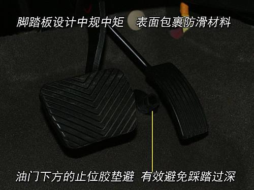 本车的油门制动踏板材料均为钢制材质,外部包裹防滑材料以防止打滑。踩踏时的力度回馈较为合理,回弹反应敏捷。各踏板间距离分配合理。