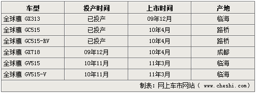 吉利汽车在细化品牌之后便将重心转移到了新车的推出计划上。旗下的全球鹰品牌整体规划也渐渐浮出水面,记者由吉利方面获悉,未来三年内全球鹰品牌将陆续投产并上市6款不同级别的新车,足见吉利汽车对全球鹰品牌的重视。具体投产计划如下: