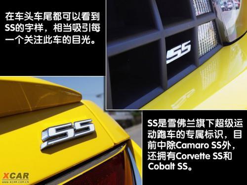 在车头车尾都可以看到SS的字样,相当吸引每一个关注此车的目光。不要小看这两个S字母组成的logo,它可是雪佛兰旗下超级运动跑车的专属标识,可以说是身份和地位的象征。目前雪佛兰产品中除Camaro SS外,还拥有Corvette SS和Cobalt SS。