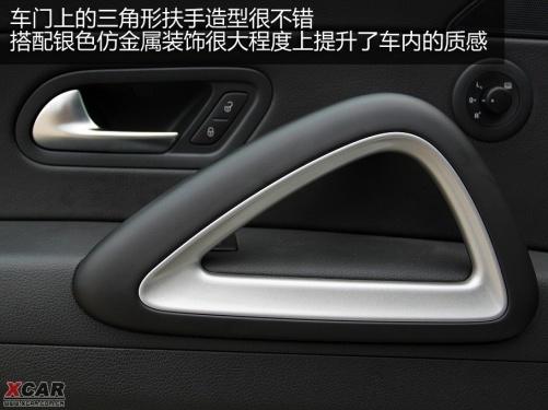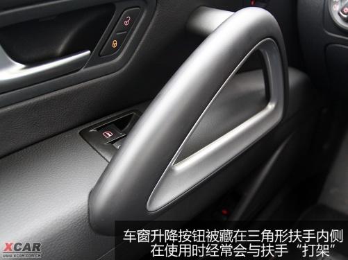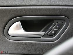 虽然还是那么熟悉的仪表台,但尚酷还是有自身独特的设计。车门上的三角形扶手造型很不错,搭配银色仿金属装饰很大程度上提升了车内的质感。旁边围绕着日常相关的操作按钮,不过一键式车窗升降按钮被藏在三角形扶手内侧,在使用时经常会与扶手“打架”,略显不便。