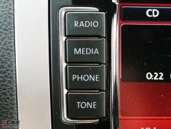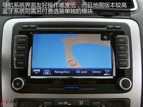 导航系统整合在系统之中,界面友好操作难度低,而且地图版本较高。蓝牙系统则需另付费选装单独的模块。如此丰富的多媒体系统相当值得推荐,也难怪在小到POLO大到途锐都会将其列为高档选装配置,只是这台试驾车的系统还未汉化。