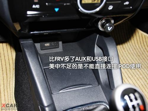 骏捷Cross配备天窗、四门电窗、四安全气囊、16寸铝合金轮毂、ABS+EBD、CD播放器、支持MP3、AUX/USB接口,安全带未系紧提示等,这些配置基本和FRV的高配版本相似,不过像支持MP3和AUX/USB接口这样的时尚配置是FRV所不具备的。