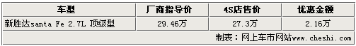 据4S店销售人员介绍:目前店内有新胜达的现车销售,但是车体颜色主要以黑色和银色为主。而到店购买这款车的消费者不仅可享受到相应的价格优惠,而其还能得到商家随车赠送的部分车内装饰。