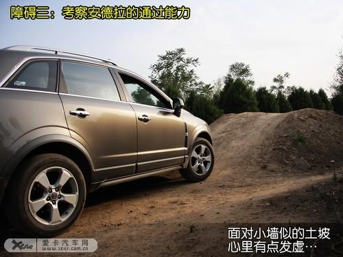 难度逐渐加大,前方陡然出现一座1米多高的土坡,这对于安德拉的接近角、离去角以及离地间隙将是莫大的考验。拥有24度接近角、23度离去角和18.2度纵向通过角的安德拉,在接近土坡时还可以从容通过,但是最小200毫米的离地间隙,使安德拉差点止步在此。幸好较为松软的土坡进过一番清理后,使安德拉能够勉强通过。