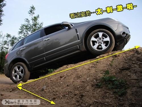 上坡容易下坡难,上坡时由于车身重心均转移至后方,使上坡时接近角依然富裕。下坡则是另一番景象,由于车头向下,车身重心均转移到车头位置,小心翼翼控制刹车,任何一个轻微的点头,都可能减少接近角度数,最终有惊无险的克服了这一障碍。