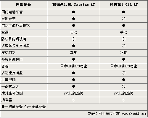 以上我们虽然对比的是福瑞迪1.6L高配和科鲁兹1.6L低配车型,但是在价格上两者是一致的。科鲁兹在空间尺寸和操控性方面占据更多的优势,福瑞迪由于是高配车型,在配置、动力和安全性上稍胜一筹。作为两款受关注度极高的A级车型,他们各自有自己鲜明的特点,在实际选车过程中,还需要消费者从自身要求出发,亲身去体验和感受两款车的魅力。(岳志刚)