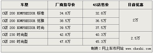 1.奔驰C最高优惠2.5万 购车送全险
