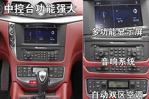 玛莎拉蒂GranTurismo的中控台功能很丰富,DVD中央显示屏、bose音响系统、自动双区空调,为您缔造一个舒适乘坐空间。