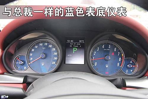 与总裁一样玛莎拉蒂GranTurismo的仪表盘采用的是蓝色表底,白色数字非常的清晰,中央的信息显示屏很实用,而320Km/h时刻提醒你它的能力有多大。