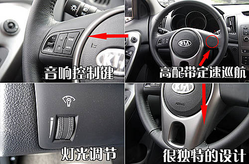 东风悦达起亚福瑞迪的方向盘设计十分独特,特别是下方的镂空设计增加了这款车的科技感。值得一提的是,全系车型均配备了音响控制系统,这在同级别车中是比较少见的,而高配车型还配备了定速巡航。