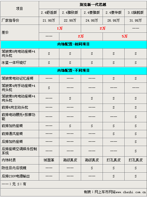 通过以上的详实解析,相信您对新君越同级车的不同配置有了一定的了解。至于您是选择性价比高的入门车型,还是选择配置丰富的豪华车型,还要看您的个人选择了。