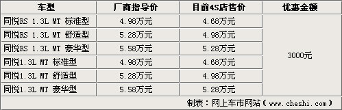 据江淮4S店的销售人员透露,目前江淮同悦1.3L手动标准型、舒适型、豪华型均有现车销售,颜色方面以红色和银色比较抢手。据笔者了解,由于江淮汽车目前对同悦系列车型的市场价格有限制,这款车型在江淮4S店内的优惠幅度并不是很高。另外销售人员还表示,1.5L手动由于没有上市所以不能销售。