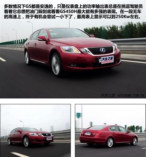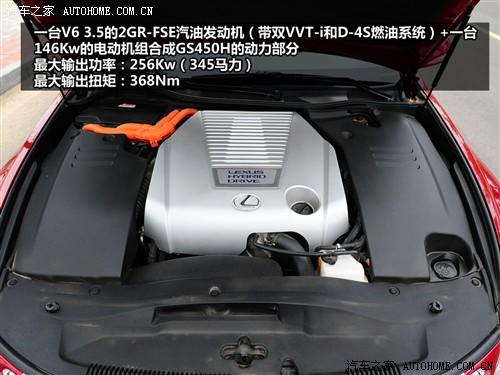 我们还是有必要先来了解一下这款车的动力系统,首先是一台3.5升的6缸汽油发动机,这台发动机所具备的双VVT-i系统和D-4S燃油系统的应用让燃油燃烧更加充分,所提供的368牛米的最大扭矩和218千瓦的最大功率已经让人满意了,再加上一台147千瓦和275牛米的电动机的辅助,GS450h的动力系统看起来已经相当强大。不过,实际上最终的输出功率并不是将两者的数值简单的相加,由于电动机和发动机采用类似混连的方式,因此GS450h最终的输出功率为256 kW。