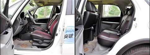 首先说说SX4较高的驾驶坐姿,个人感觉很适合这类Cross车型的特点,视野开阔、方便轻松驾驶。其次,这款运动版车型的座椅采用了双色双材料设计,视觉效果不错,且支撑性和包裹性都令人满意。前排侧向的支撑较硬,坐垫角度合适,个人认为长时间驾驶带来的疲劳程度在可接受的范围内。