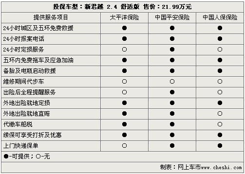 消费者在购买车辆保险获得车辆安全保障的同时,各保险公司还提供了额外的免费服务项目。对于经常在城区行驶的消费者,选择提供五环内车辆故障免费拖车以及应急送油服务的保险公司则能带来许多便利;若消费者喜欢经常外出跨省自驾游,则选择可异地定损、理赔的保险公司。各保险公司提供了丰富的附加服务,使得消费者有了更多样的选择,相较而言中国人保提供的人性化服务并不是很多。比较遗憾的是这三家保险公司在维修期间均没有为消费者提供代步车的服务。