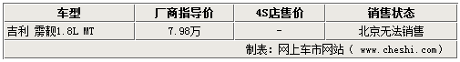 经销商表示,吉利雳靓跑车因排放原因而退出了北京市场,各家店内都没有现车也无法销售,全系车型仅提供除北京以外的排放标准为国三的外地省市,非常遗憾。不过销售人员表示,全新的吉利中国龙将有望很快开始销售,望消费者继续关注吉利跑车的动态。