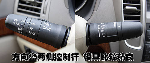 方向盘左右控制杆采用塑料材质,模具非常精细,做工质量也非常好,使用时手感以及操作力度行程适中。