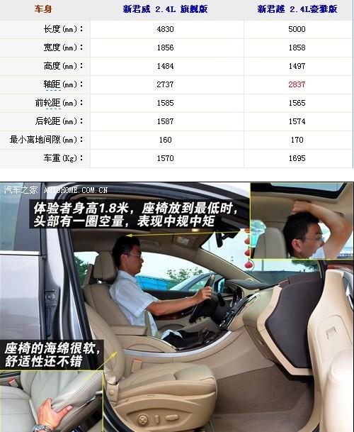 新君威的前排头部余量和新君越一样,但后排就差很多