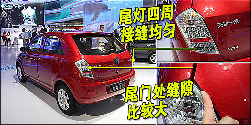 天津一汽威姿V1车尾部分设计与老款区别差别很大,与车头相同的是,威姿V1的尾灯及后行李箱的接缝同样十分均匀,整体做工做到了前后一致,但尾门处缝隙较大。