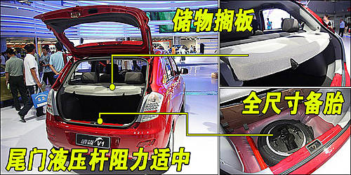 天津一汽威姿V1尾门开启轻巧,外部则需要用钥匙开启。后备箱盖采用机械式支撑,开启时支撑度一般,备胎位于行李箱底部。