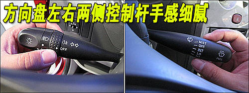 方向盘左右控制杆采用塑料材质,模具非常精细,做工质量较好,使用时手感以及操作力度行程适中。