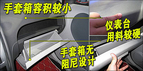 天津一汽威姿V1的手套箱没有阻尼设计,在打开手套箱后依靠重力自由下落,手套箱看起来比较小,所以只能存放一些小件的东西。
