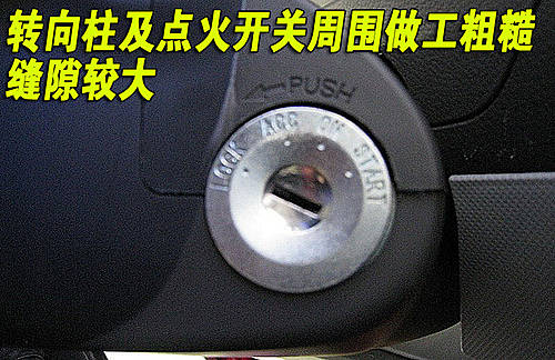 天津一汽威姿V1采用了传统的点火方式,不过通过图片我们可以非常明显的看到,钥匙孔周围的缝隙较大,其做工还有提升的空间。