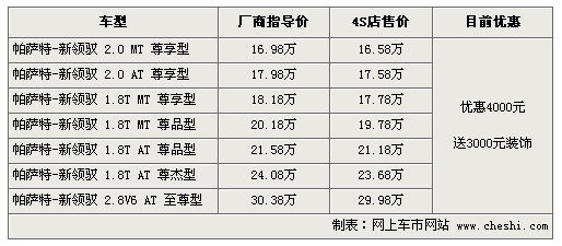 上海大众帕萨特新领驭-现金优惠4000元 再送3000元装饰