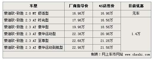 据4S店销售人员介绍:目前蒙迪欧致胜全系优惠1.4万元,但现车较少,几乎所有车型都需要预订,优惠幅度较之前有所回落。2.0车型目前不接受预订,厂家不给予排产。主打车型为2.3升时尚型、豪华型、豪华运动型三款车型,预定车辆需等待1个月左右,2.3至尊型、豪华运动导航版预定需等一个半月时间。