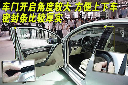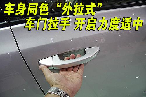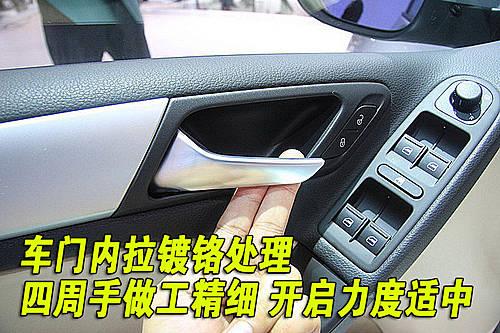 第六代高尔夫四只车门拉手都喷上了与车身同色的车漆,开启车门时发现车门拉手部分做工比较细致。