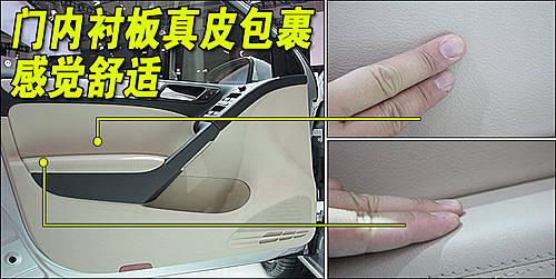 车门衬板采用了真皮作为材料,手感很软,当驾驶者把肘部放上去时不会有生硬的感觉。