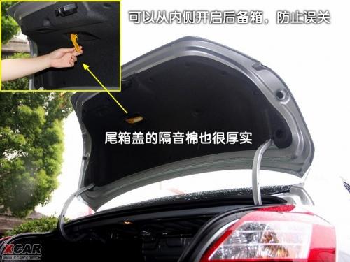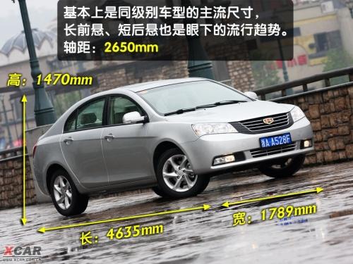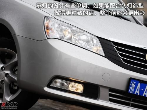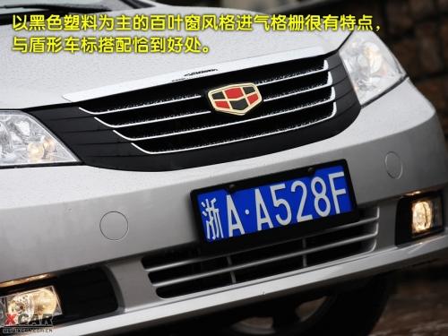 以黑色塑料为主的百叶窗风格进气格栅很有特点,个人感觉和以方块为基调的盾形车标搭配恰到好处。头灯和尾灯都是眼下最流行的造型,虽然依稀还有些模仿的影子,但是整体效果不错。如果把帝豪车标挡住的话,真的很难想到这是一台吉利车。美中不足的是雾灯的设计有些单调,如果能配合头灯造型做得更精致的话,整个前脸会更出彩。