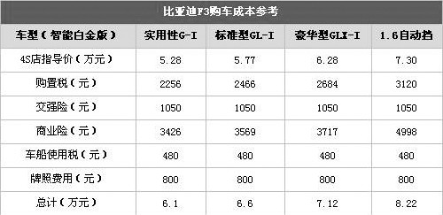 比亚迪F32009年上半年1-6月销量:118922辆,名列销量排行榜的榜眼之位。这样的成绩可以说是中国自主品牌的佼佼者。以6万左右的价格就可以买到一款空间不错的1.5L紧凑型车,很符合国人的购车口味。下面小编我从购车到维修保养及日常使用给大家分析一下比亚迪F3的用车成本。