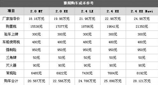自从08年1月6日第八代雅阁在中国上市以来,凭借良好的外观、优秀的操控性能以及不错的油耗,一直拥有不错的销量。在同级别车中,销量名列前茅。从第七代雅阁曾经创造的连续19个月的同级别车的销量冠军的记录,以及目前热销的第八代雅阁,充分说明了消费者对雅阁的青睐程度。很多网友非常关注这款车在平时用车成本,以及油耗方面的问题,下面网易汽车编辑就为大家对这款扯得购车成本、保养费用和用车费用三方面做逐个分析。