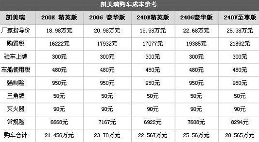 一、购车成本,凯美瑞2.4排量的240E精英版在价格方面优势比较明显。相比于2.0排量的车型,性价比更加突出。裸车价格仅为19.98万元。